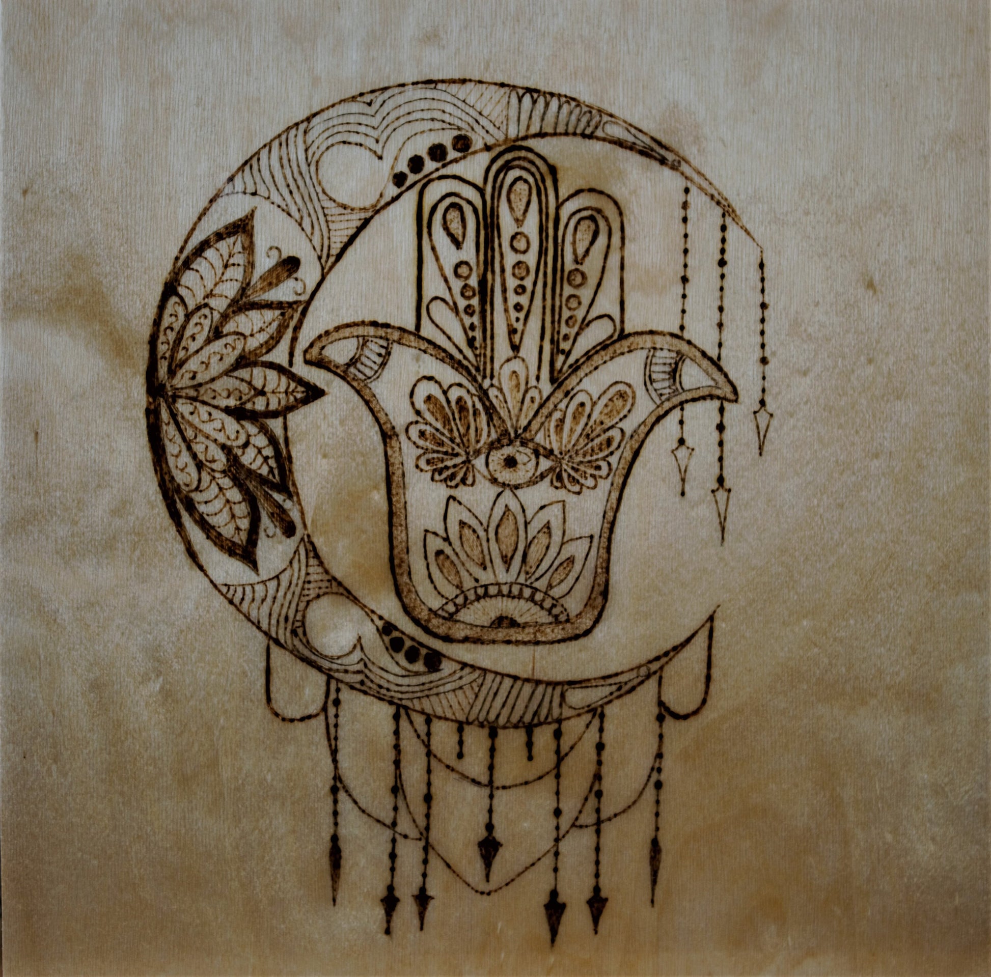 Hamsa Hand - Mandala - Hand-Crafted Wood burning (Pyrography) on Birch
