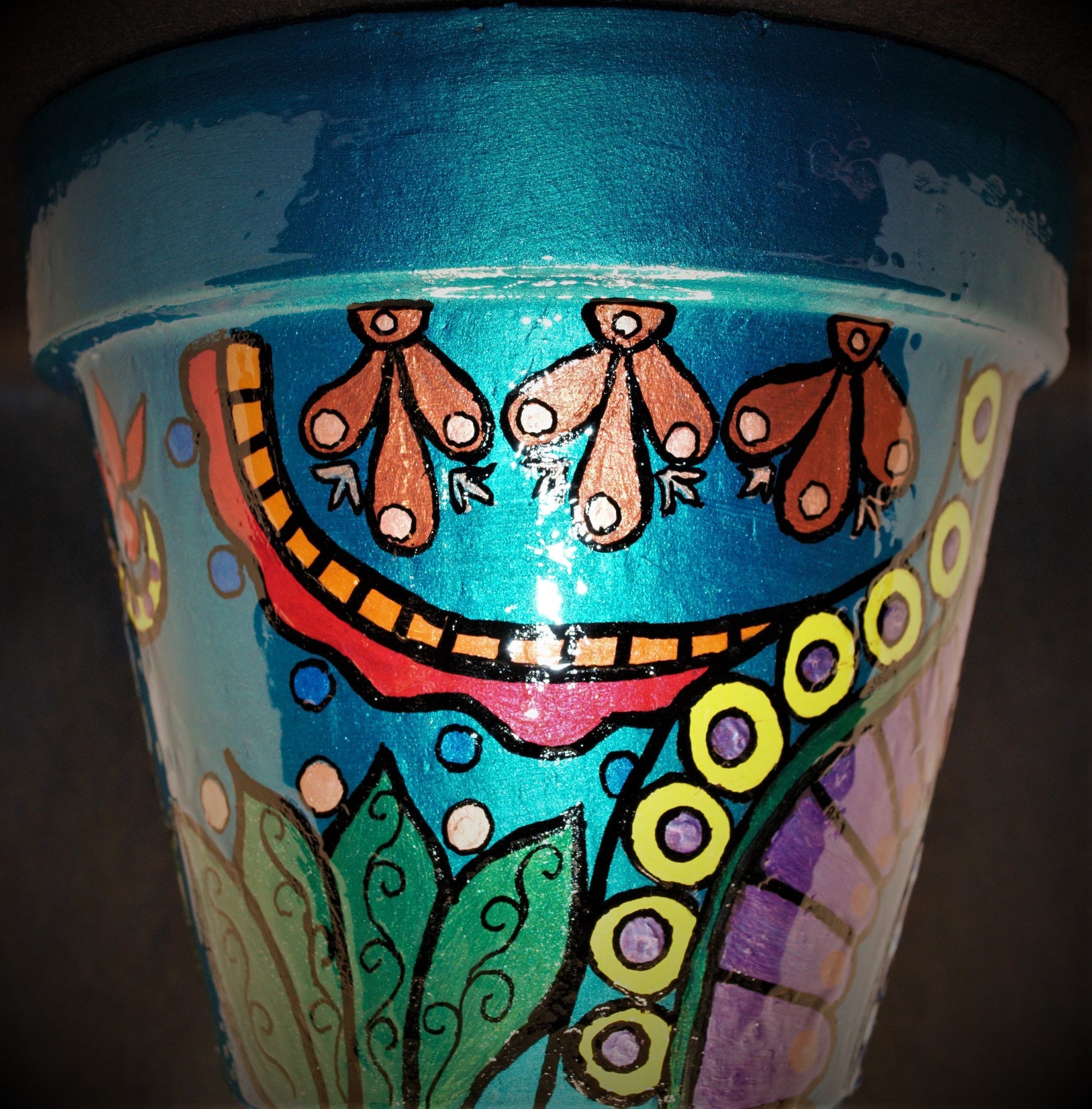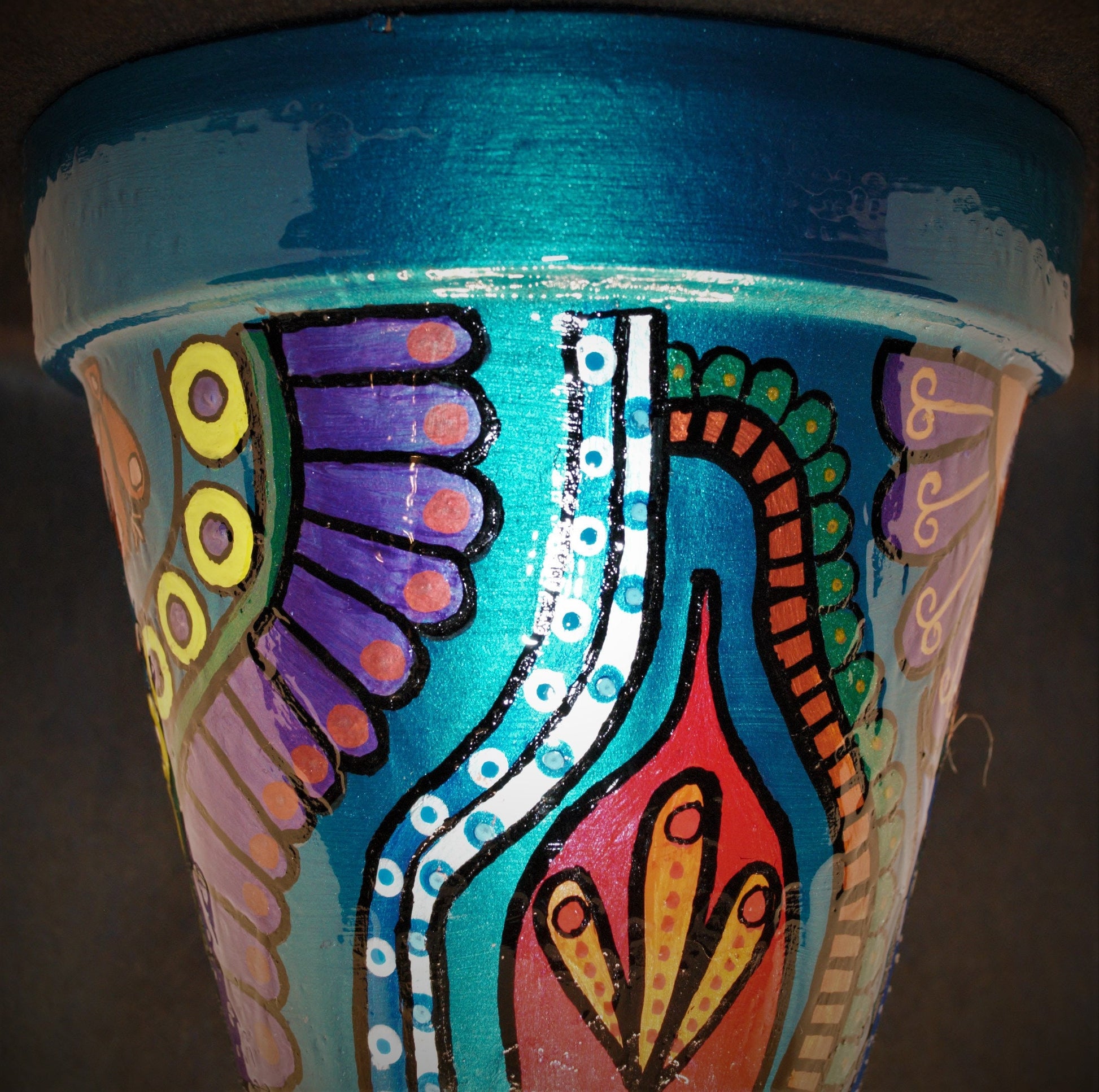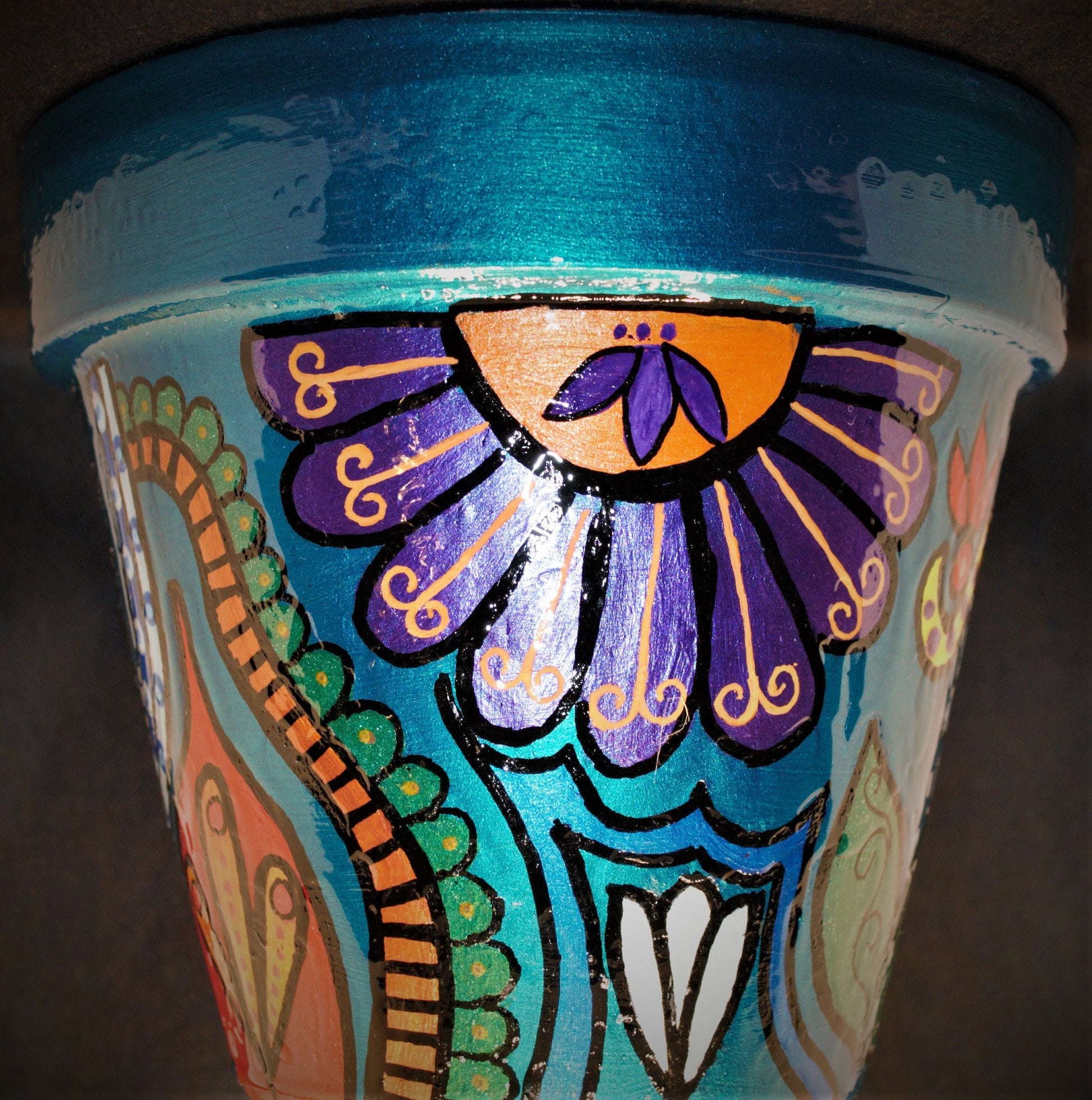 Bright and lively hand-painted terra cotta pot - smile worthy!