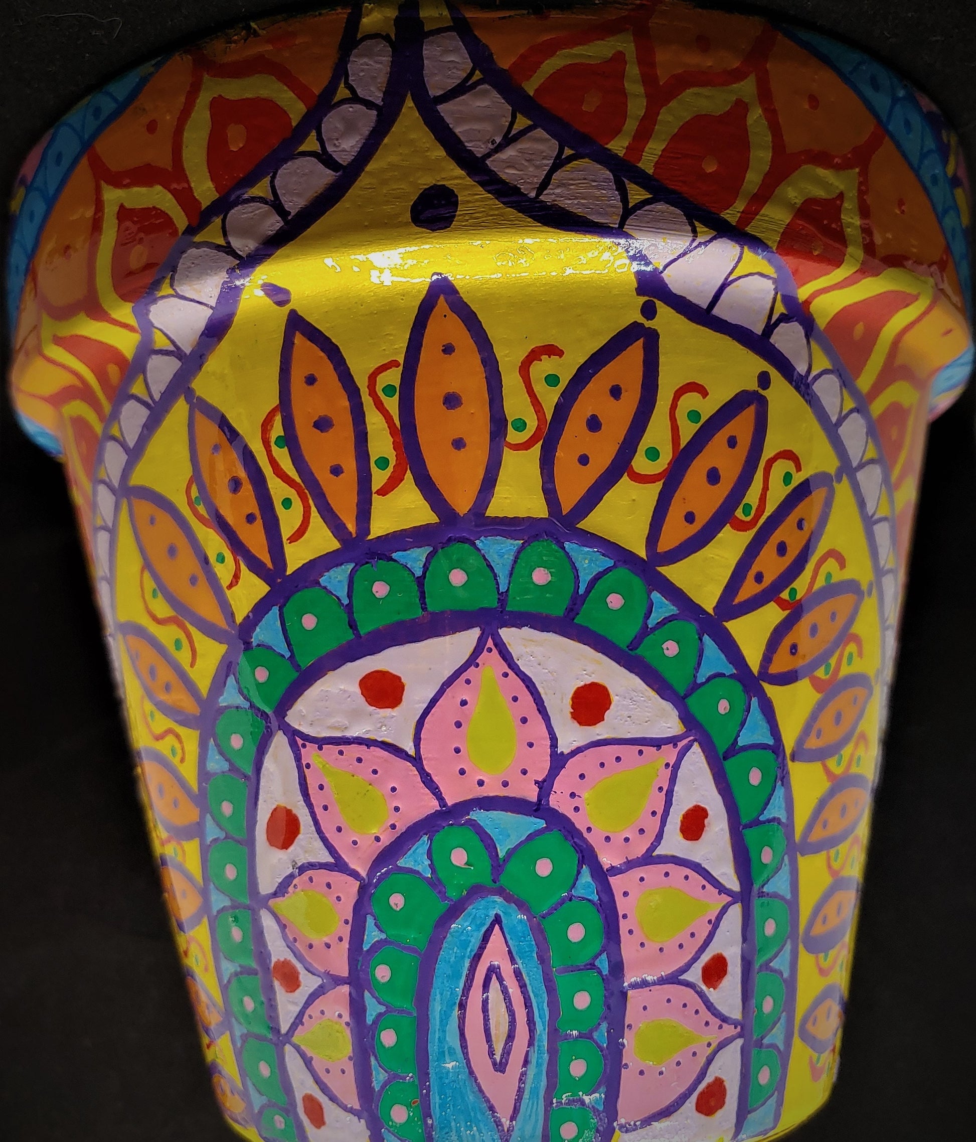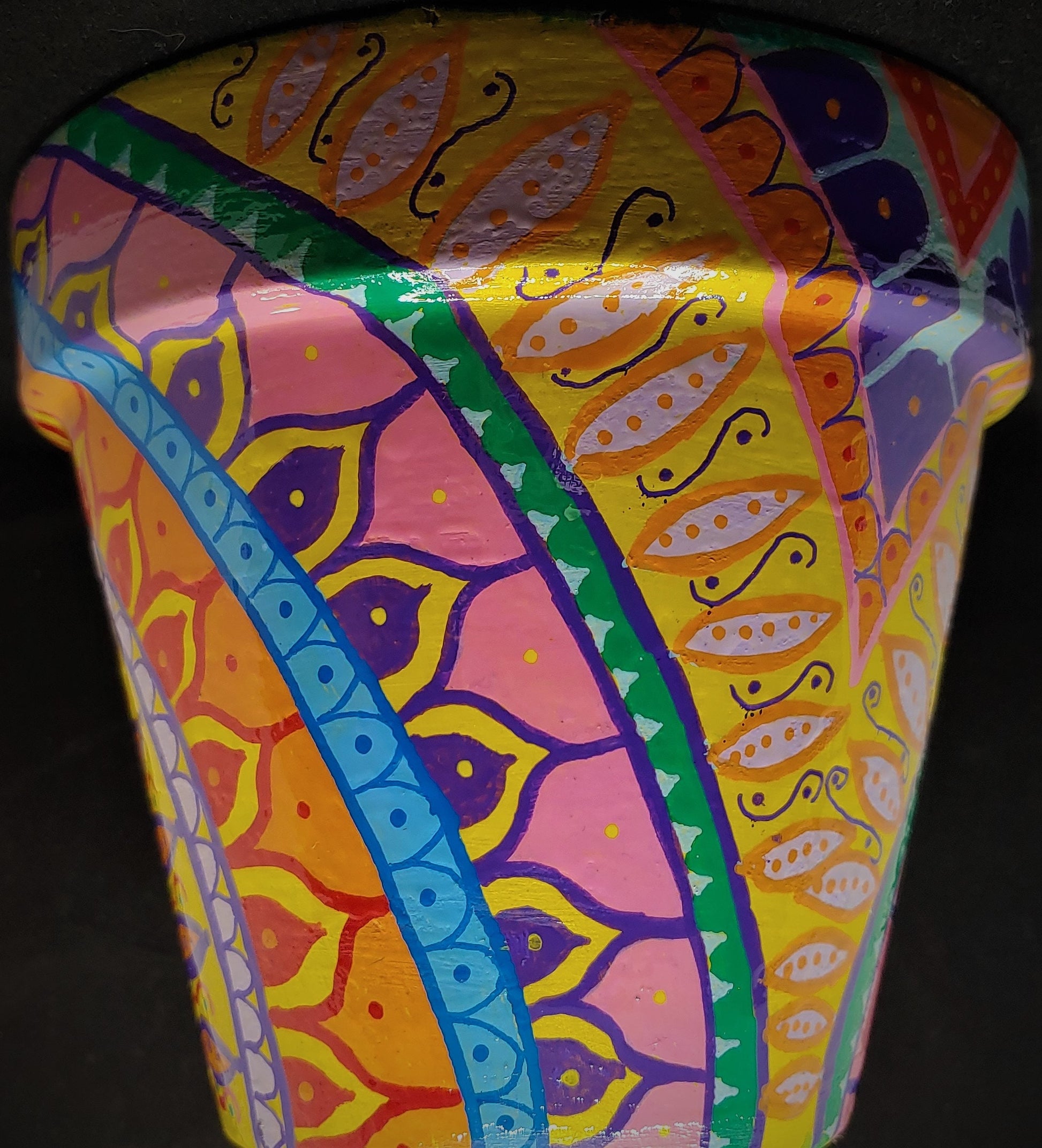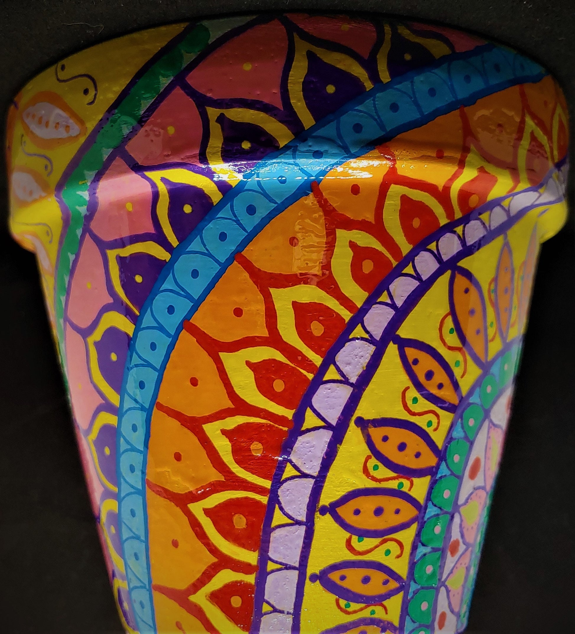 Bright and lively hand-painted terra cotta pot - smile worthy!