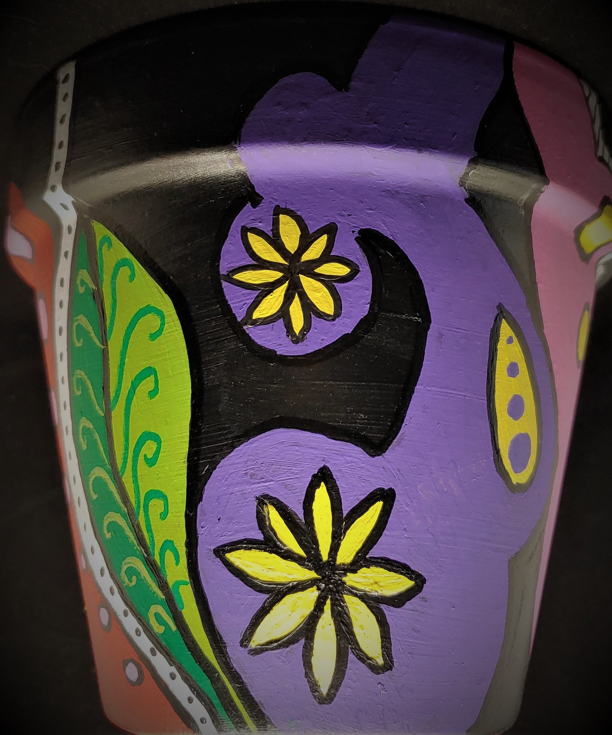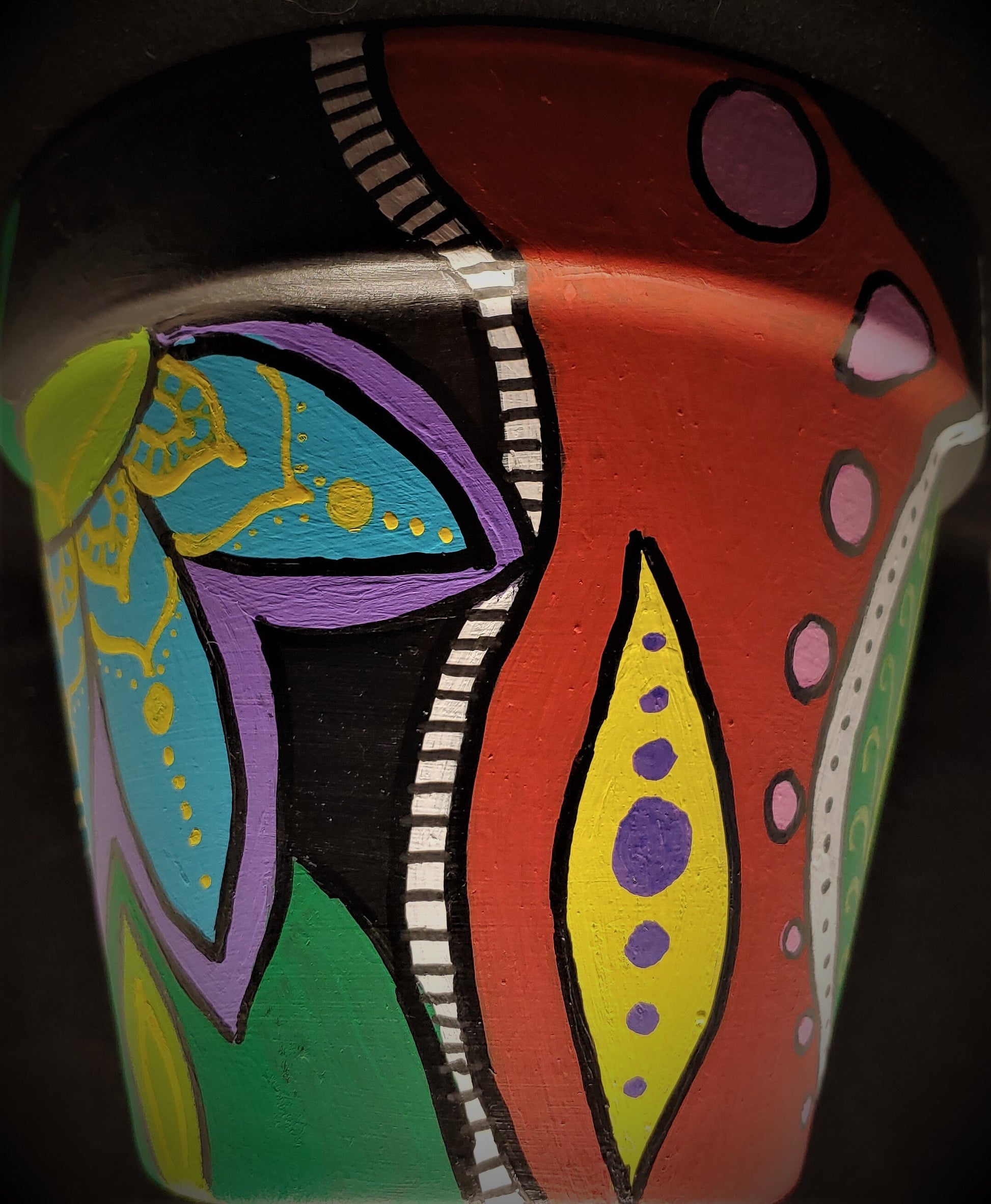 Dramatic midnight black background that makes the brightly colored designs pop!